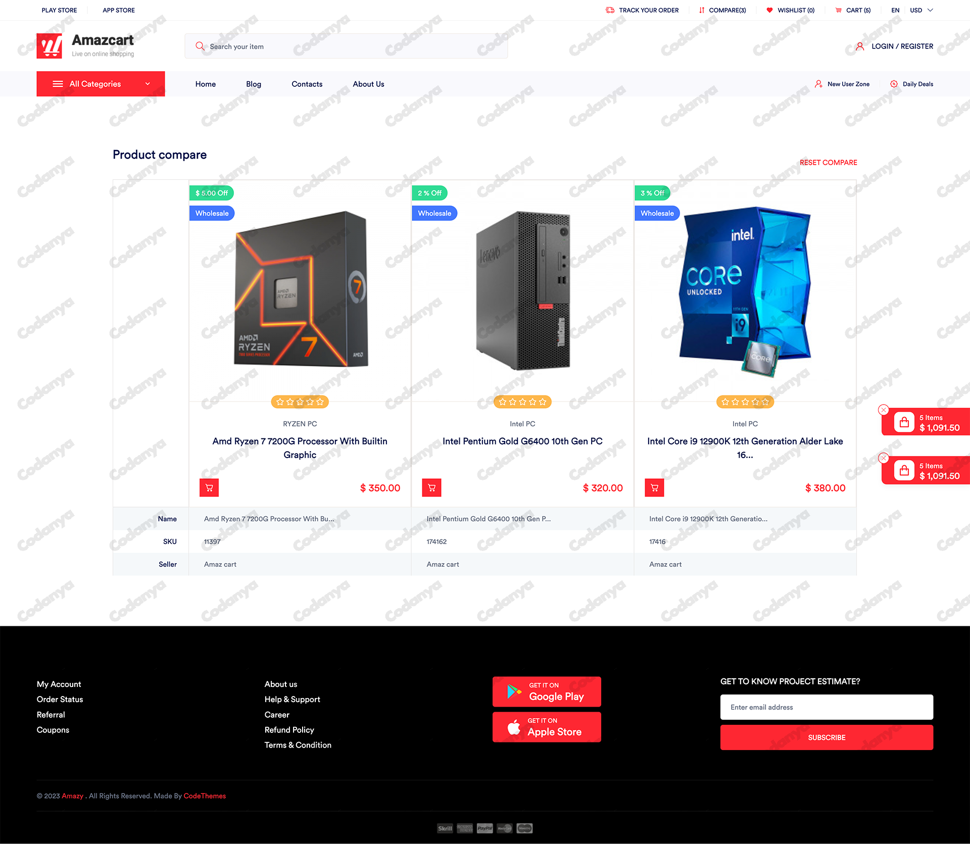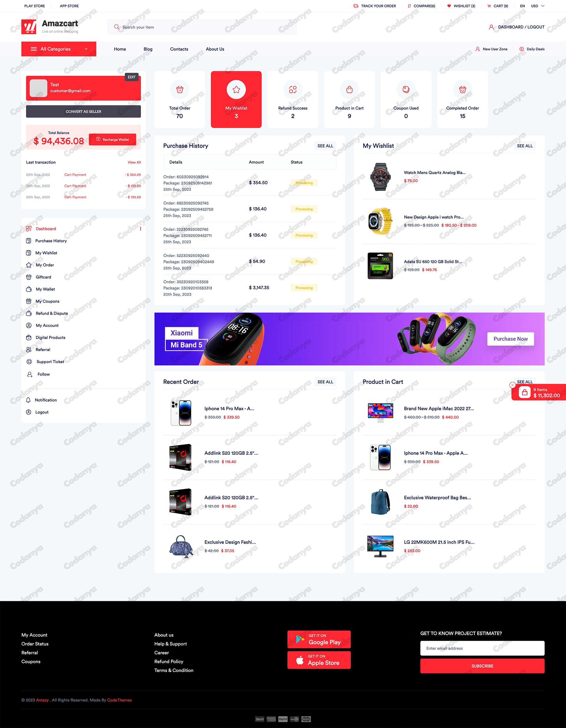 AmazCart multi-vendor e-commerce platform allows multiple sellers to list and sell their products on a single online marketplace. Customers can browse and purchase products from various vendors within the same website.