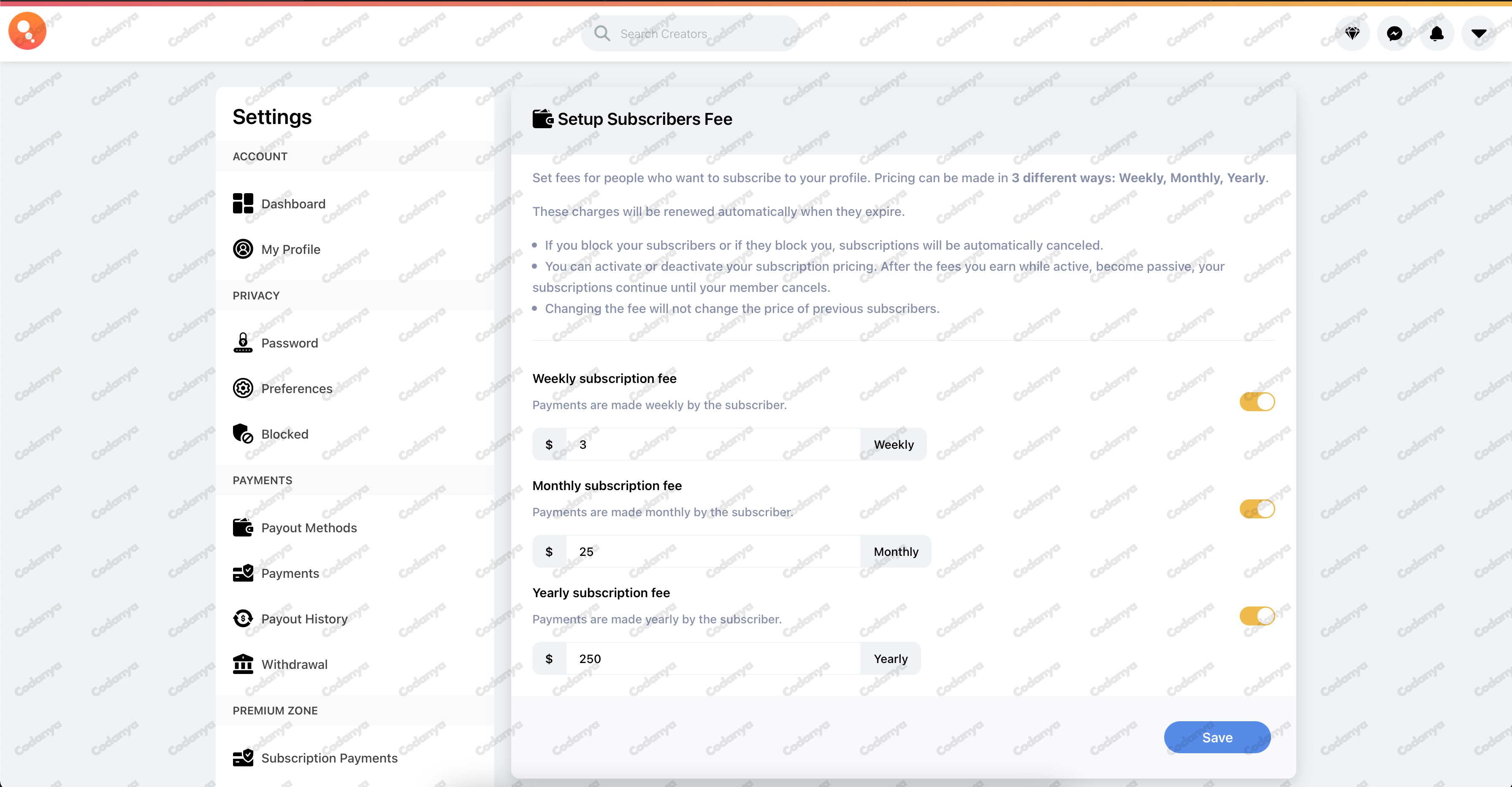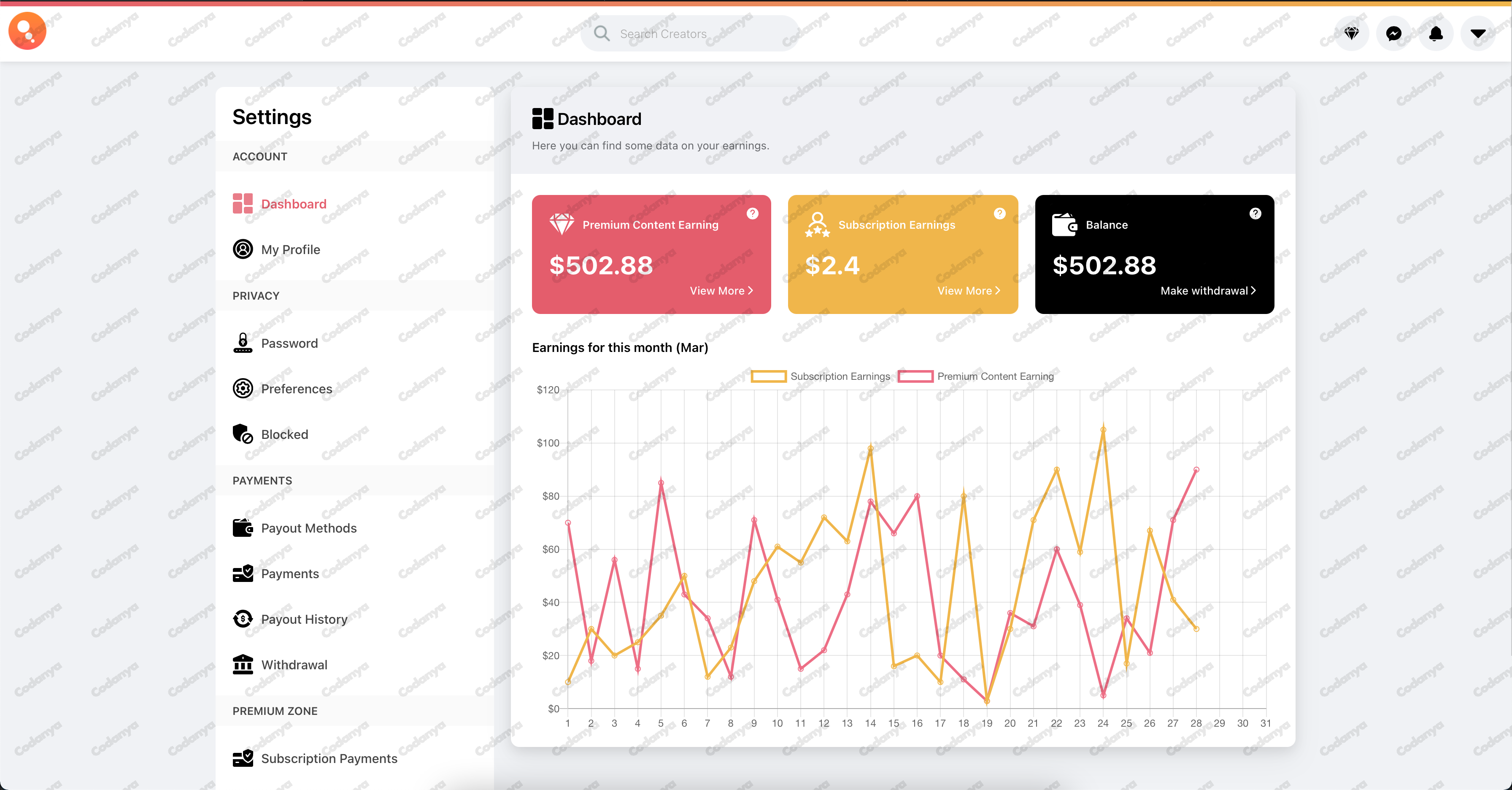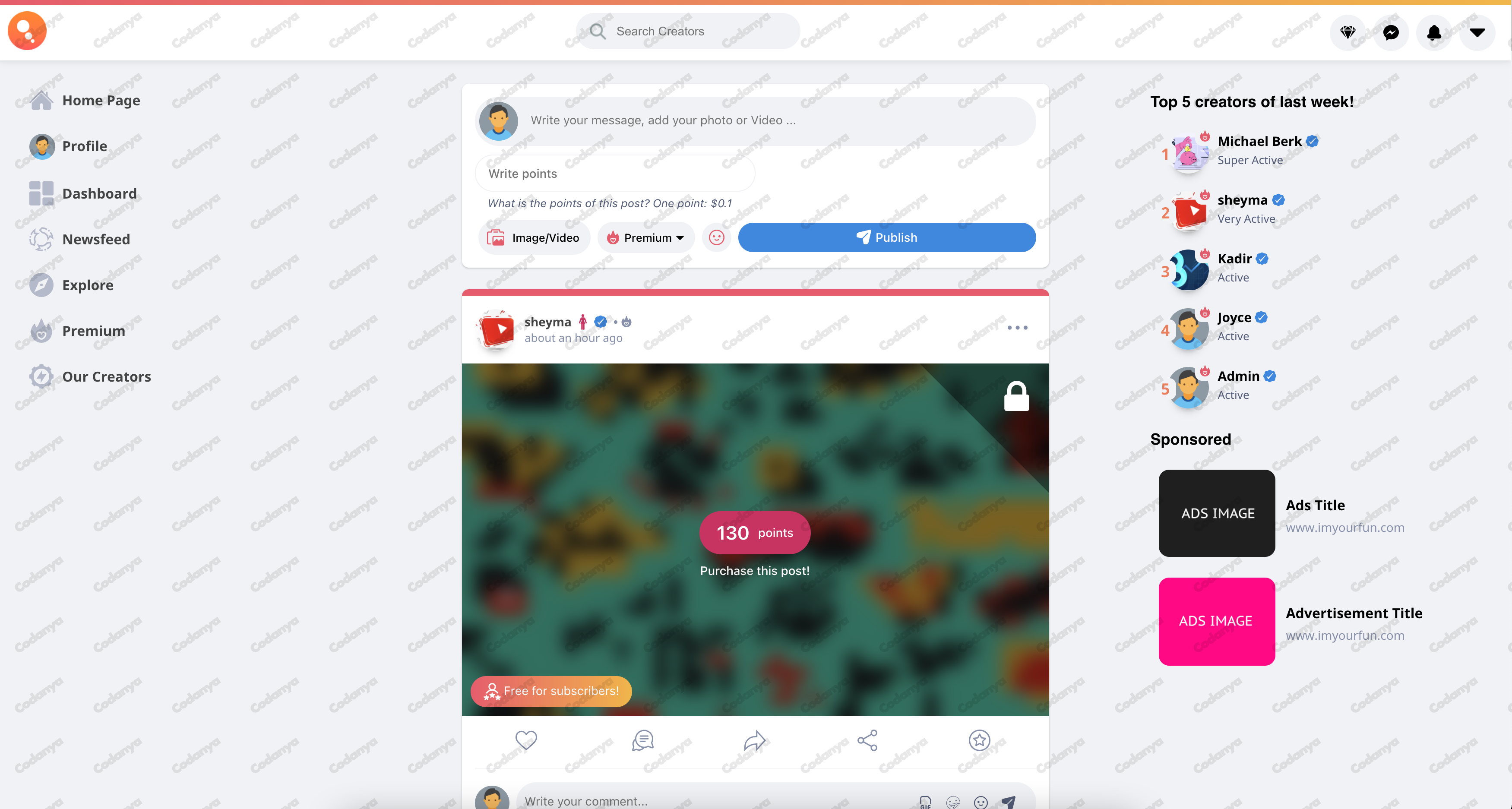 Creators can share free or paid content, engage with their followers, and grow their community — all within a clean and intuitive interface.