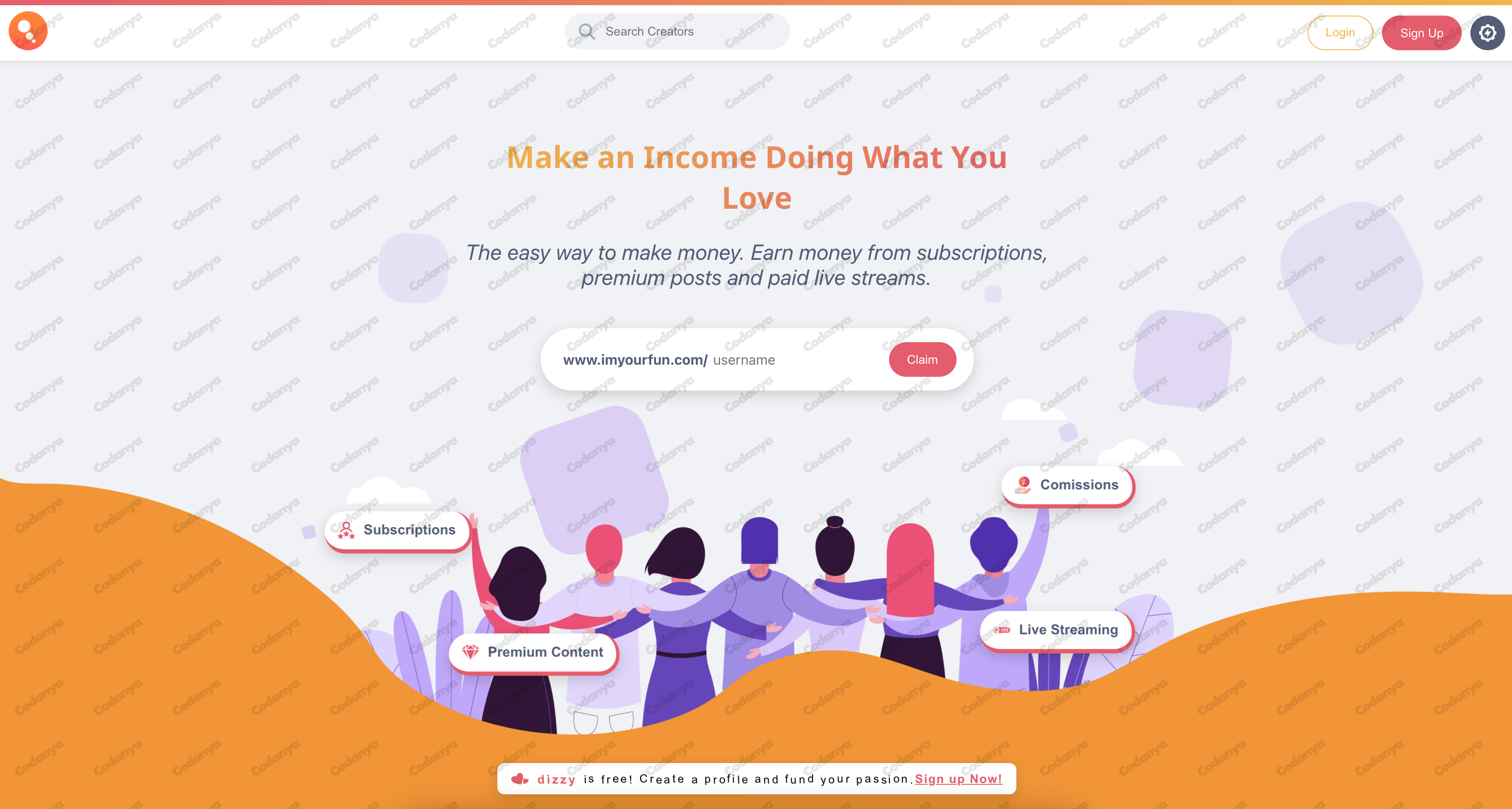 Dizzy is a modern, secure, and scalable platform that allows content creators to monetize their work through subscriptions and premium posts. Whether you’re a writer, designer, developer, photographer, influencer, or any type of creative individual — Dizzy gives you the tools to earn from your audience.