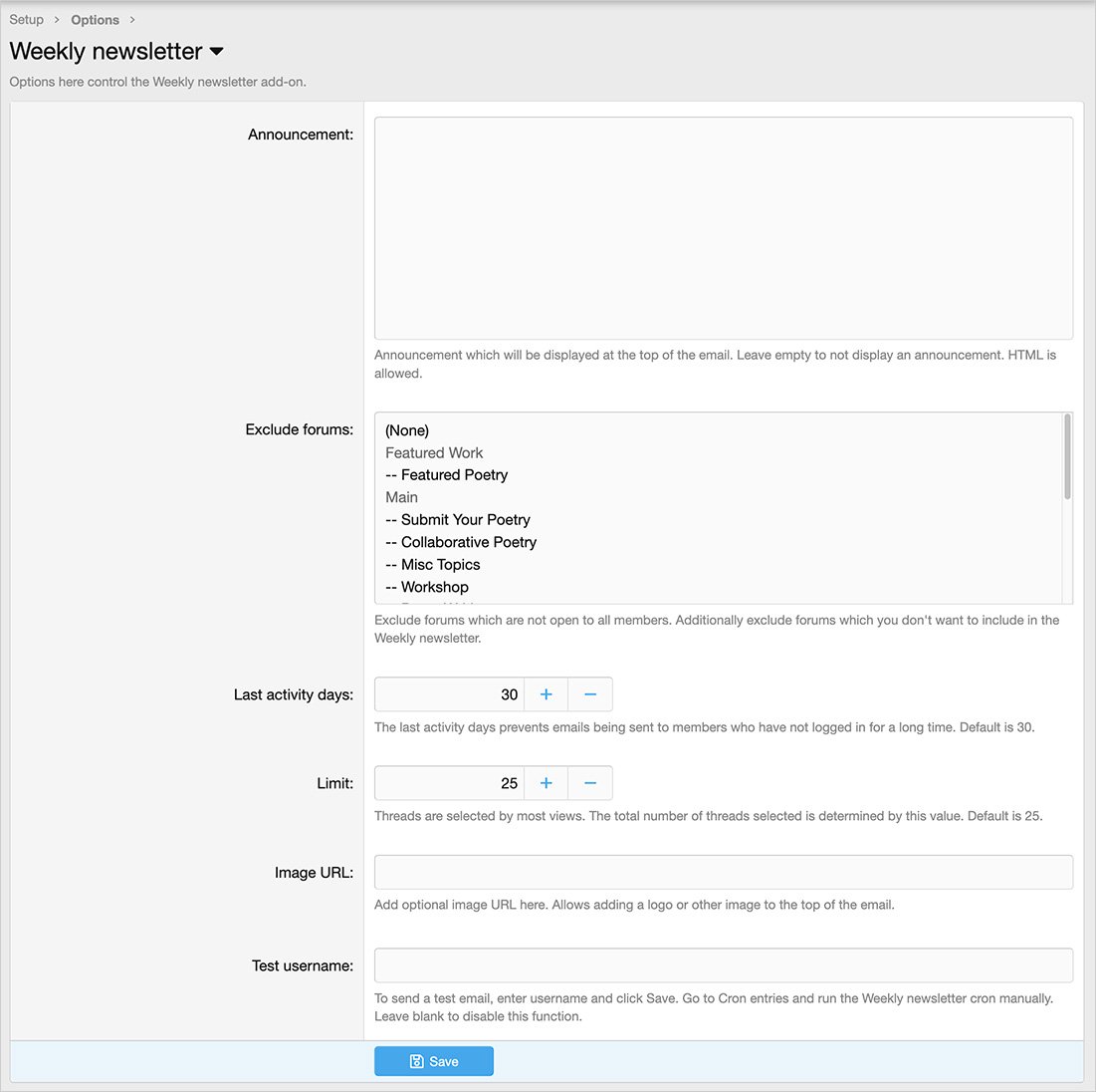 A: Add weeklynewsletter/stats to your forum URL.