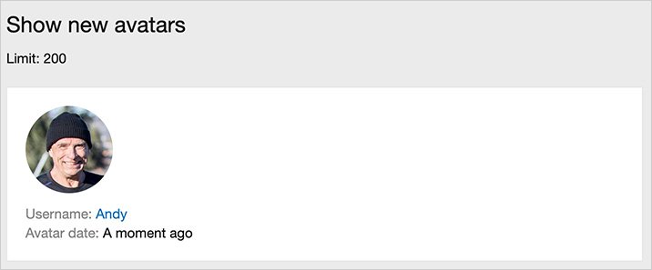 (Example of Show new avatars page)